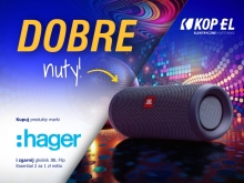 Zapraszamy do udziału w promocji współorganizowanej z firmą Hager pn. "Dobre nuty", w której do zdobycia są głośniki bezprzewodowe JBL Flip Essential 2 za 1 zł netto. Aby zdobyć jeden z nich należy zakupić dowolne produkty Hager o wartości min. 10 000 zł netto w okresie trwania promocji.