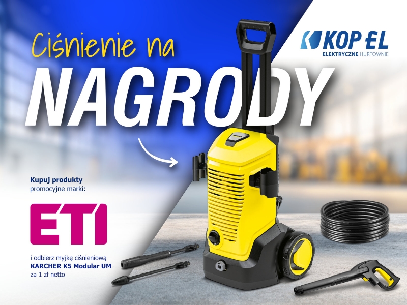 Zapraszamy do udziału w promocji współorganizowanej z firmą ETI Polam pn. "Ciśnienie na nagrody", w której do zdobycia jest myjka ciśnieniowa Karcher K5 Modular UM za 1 zł netto.