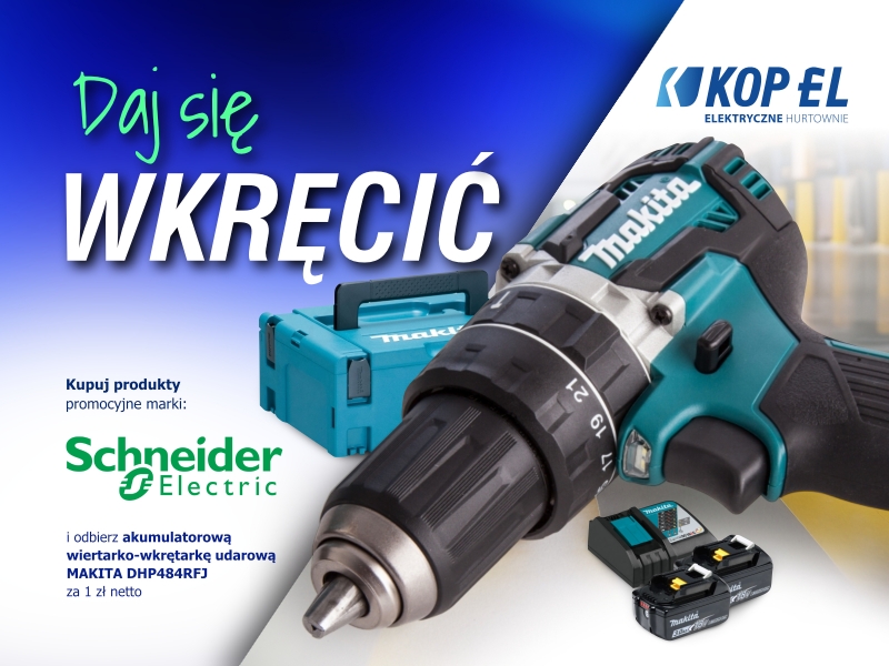 3.1. Nagroda przysługuje Uczestnikowi, który dokona zakupu Produktów Promocyjnych marki Schneider Electric o wartości min. 15 000 zł netto. Nagrodą w promocji jest wkrętarka Makita DHP484RFJ za 1 zł netto.