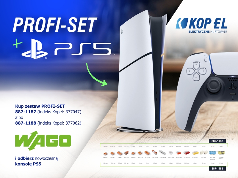 2. Akcja polega na sprzedaży przez hurtownie elektrotechniczne swoim klientom zestawów promocyjnych, zawierających wyroby WAGO wraz z konsolą PlayStation 5.