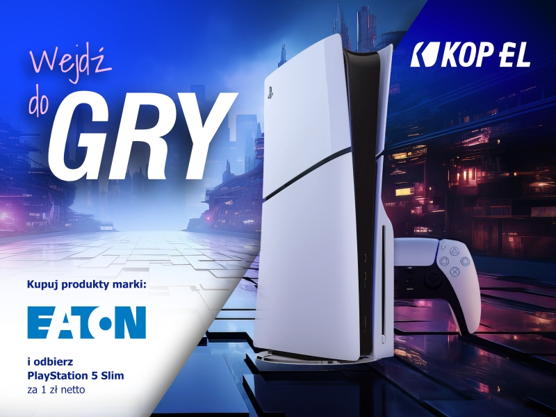 Zachęcamy do udziału w promocji pn. "Wejdź do gry", współorganizowanej z firmą EATON, w której do zdobycia są konsole Sony PlayStation 5 Slim za 1 zł netto. Aby zdobyć jedną z nich, należy zakupić dowolne produkty EATON o wartości min. 50 000 zł netto.