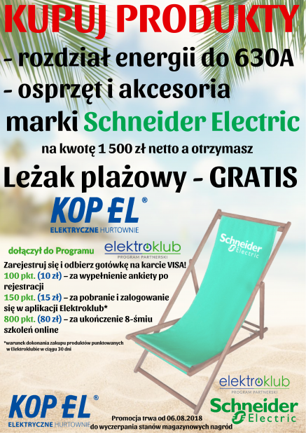 za min. 1500 zł netto i odbierz Leżak plażowy – Schneider Electric!